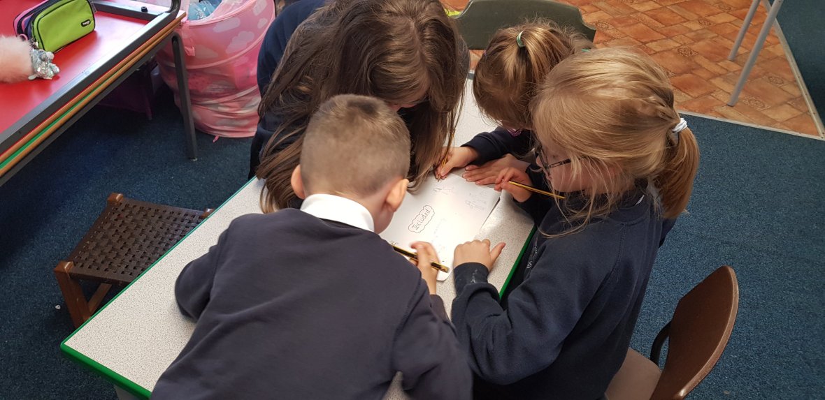 P1-4 are brainstorming some suggestions for the new school Values. They are working together to come up with what the value sounds like, looks like, feels like and the meaning.Also, we are currently running a competition to come up with a new school motto.