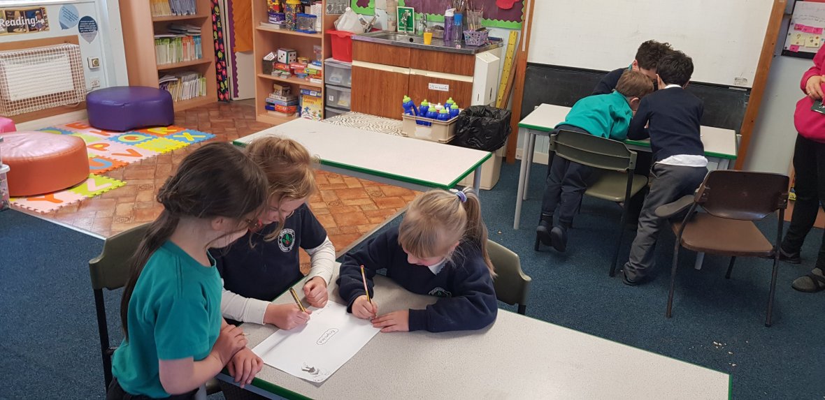 P1-4 are brainstorming some suggestions for the new school Values. They are working together to come up with what the value sounds like, looks like, feels like and the meaning.Also, we are currently running a competition to come up with a new school motto.